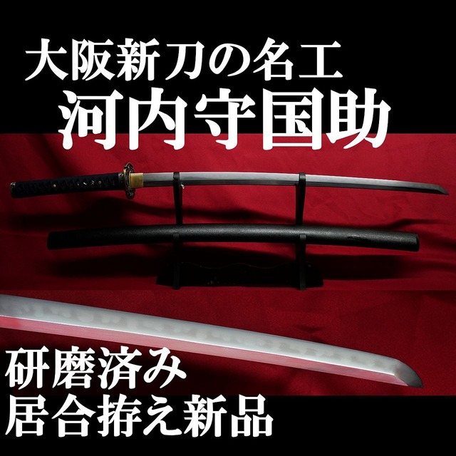 【新刀】河内守国助 67.3cm 刀身重量750g 元幅約3cm 元重 約7mm 研磨済!居合外装拵え新品!!