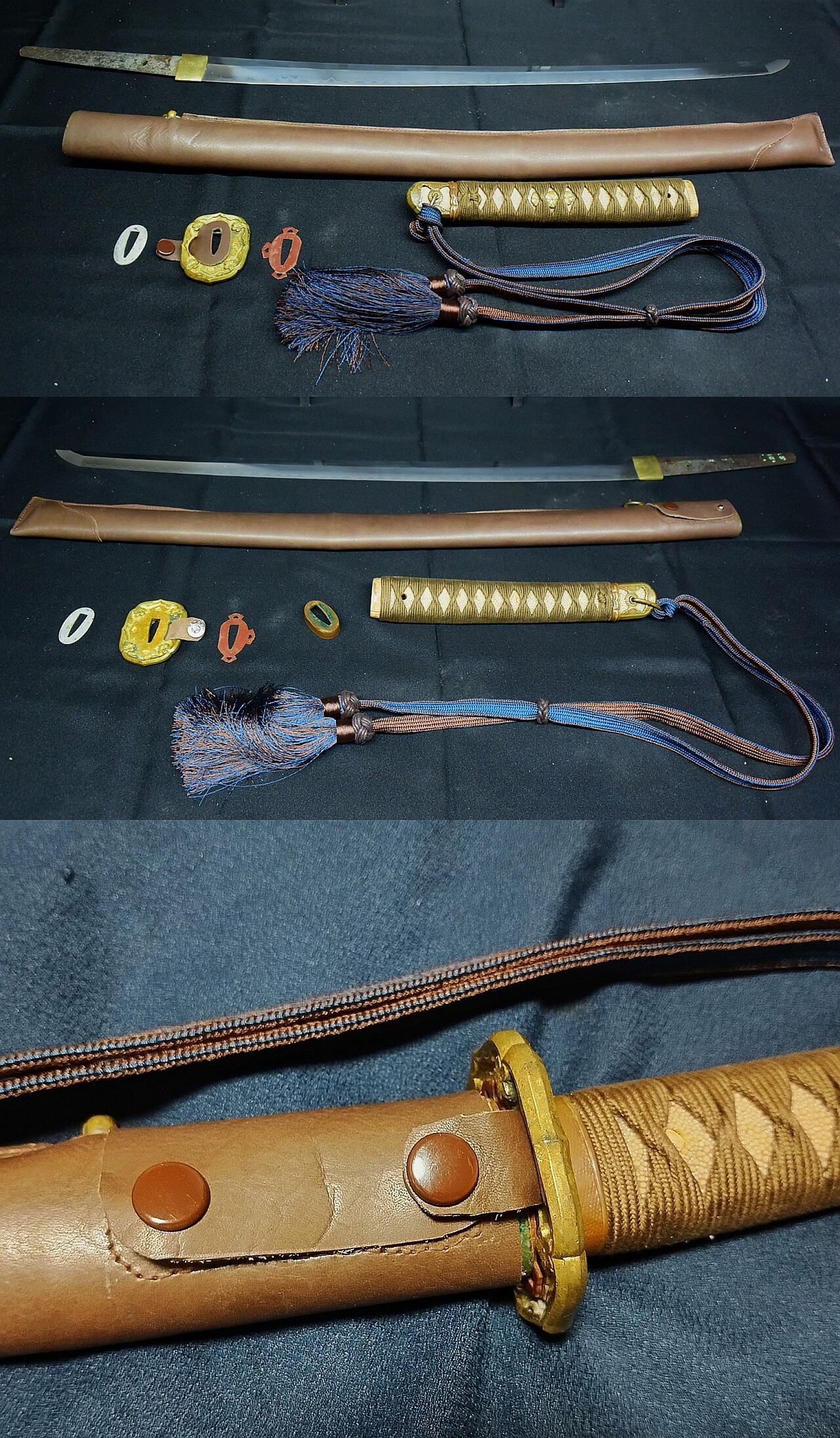 当方で、軍刀革カバーを新規作成、柄糸巻直し、刀身研磨までしております。
