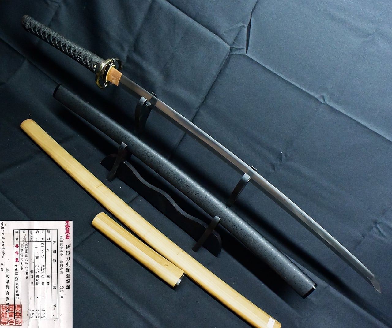 恐らく九州系の刀工の刀に銘を入れたものと思いますが、長さ69cm、刀身重量が810gもあり迫力のある御刀です。