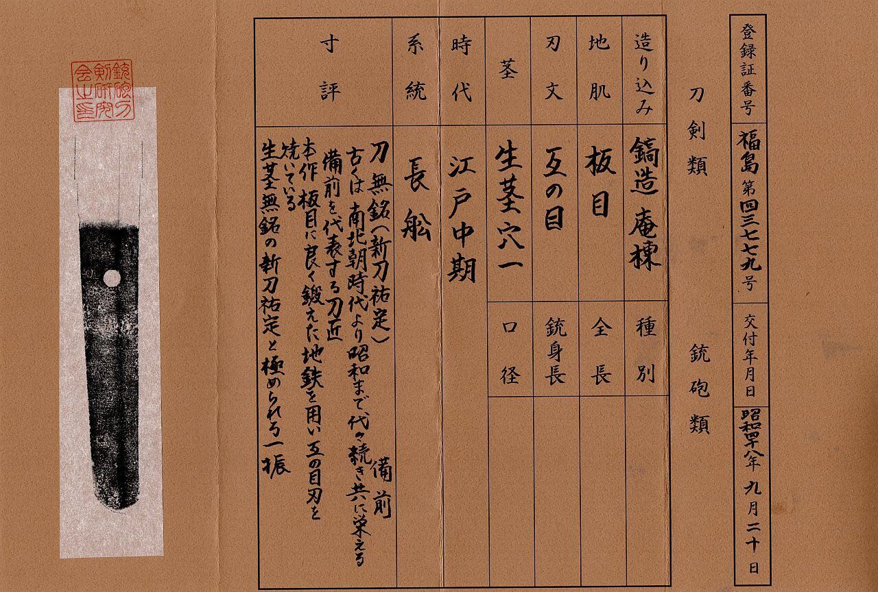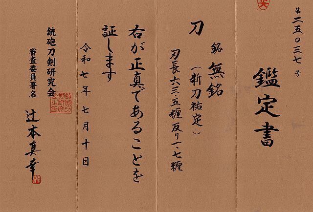 銃砲刀剣研究会鑑定で新刀祐定と極められた御刀です。