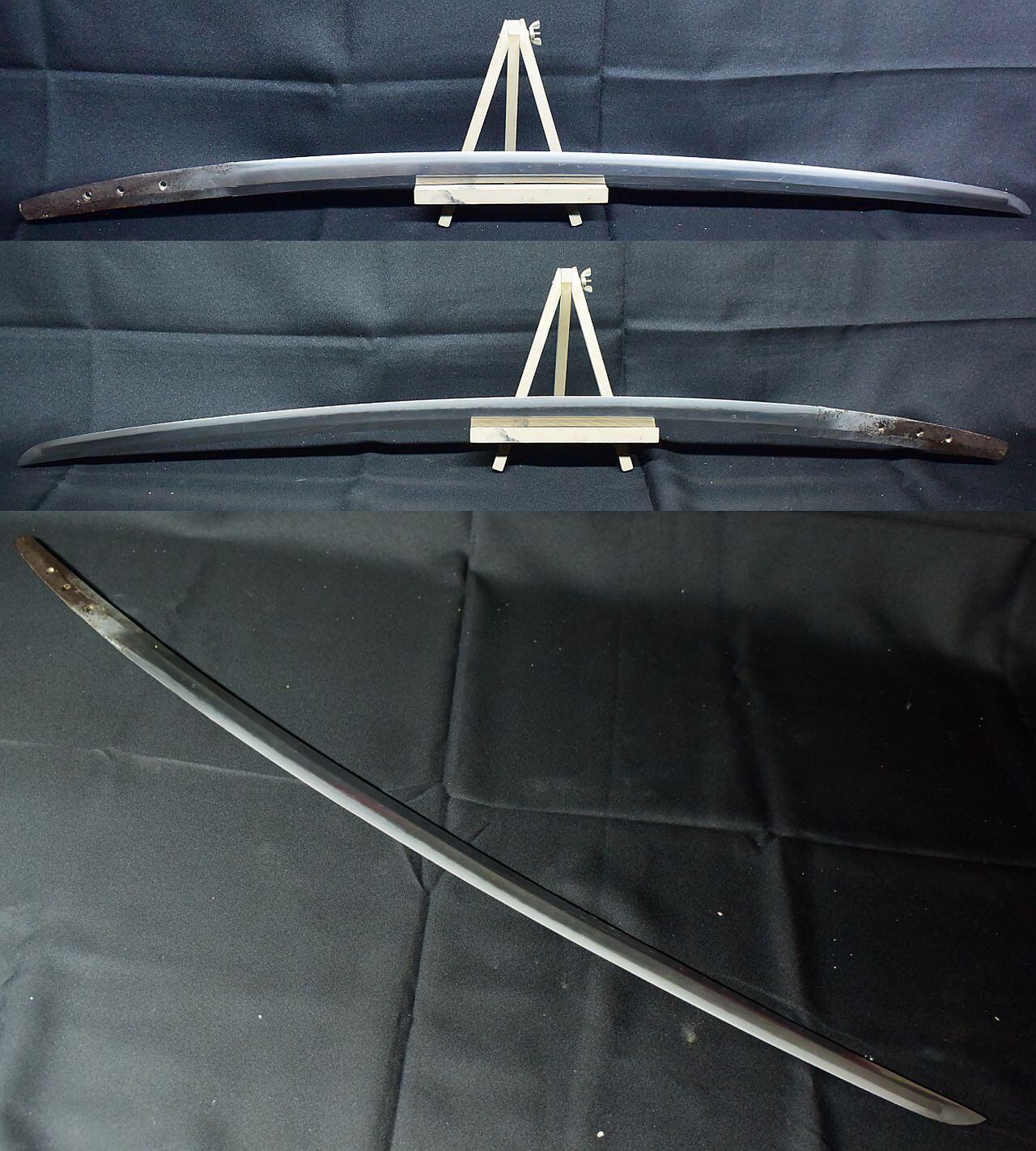 【古刀】 末備前? 無銘(薄っすら則光と銘が見える) 67cm 元幅2.7cm 元重6mm 刀身重量640g 2つ目釘 試斬に