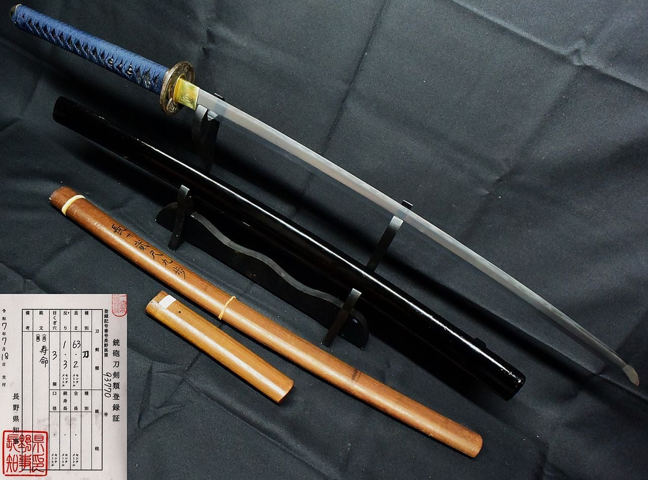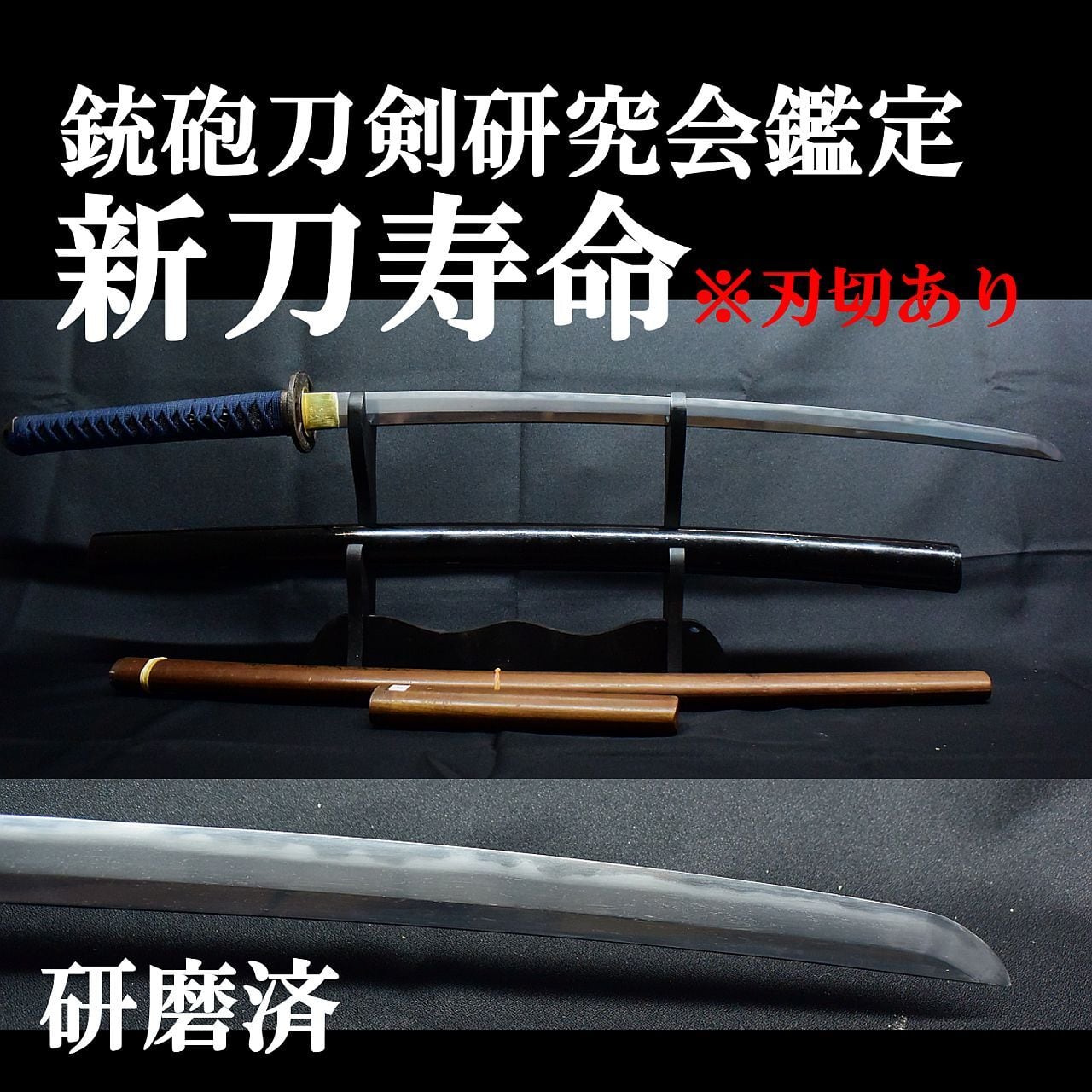 【新刀】銃砲刀剣研究会鑑定 新刀寿命 63.2cm 刀身重量600g 元幅約3.0cm 元重 約7mm 研磨済