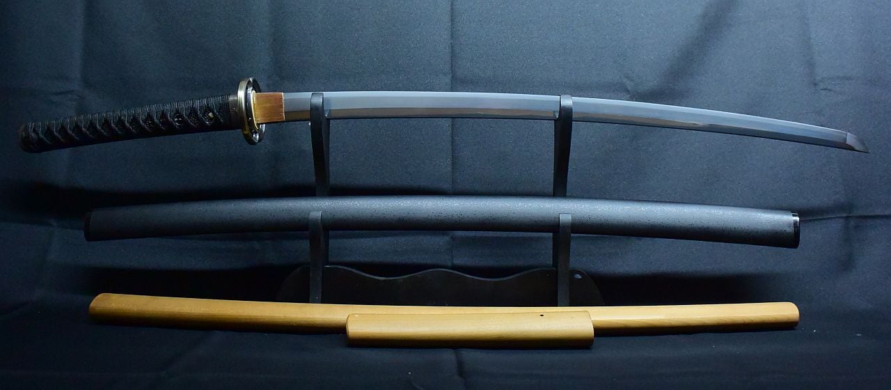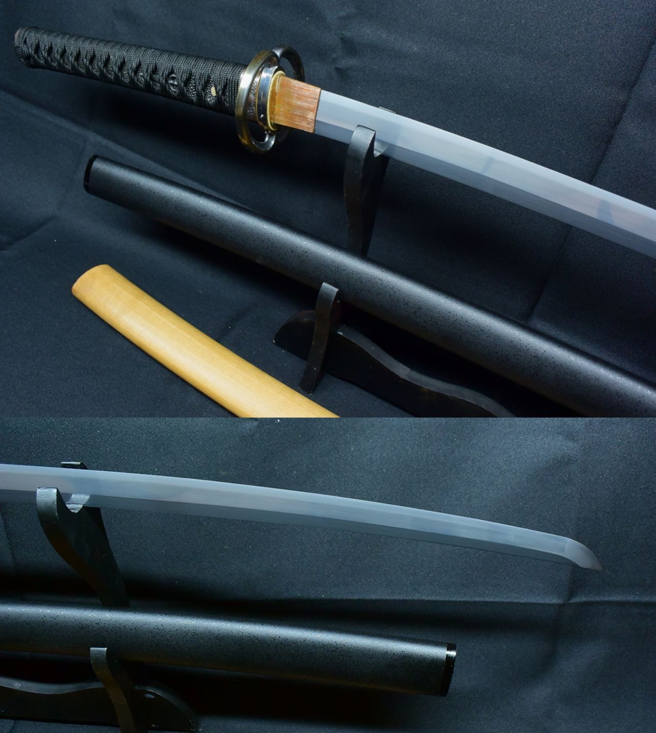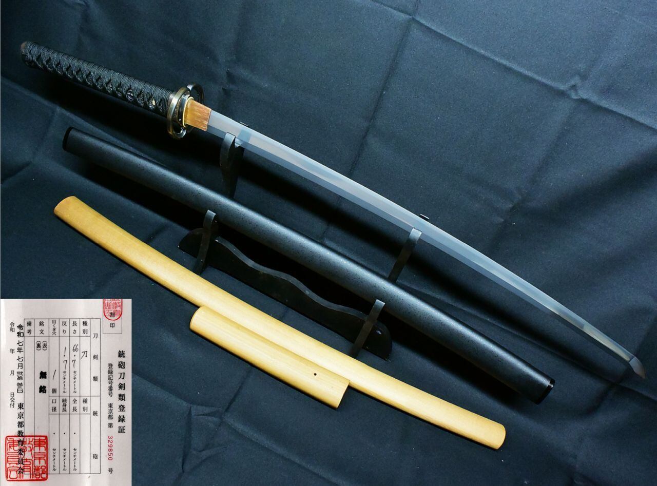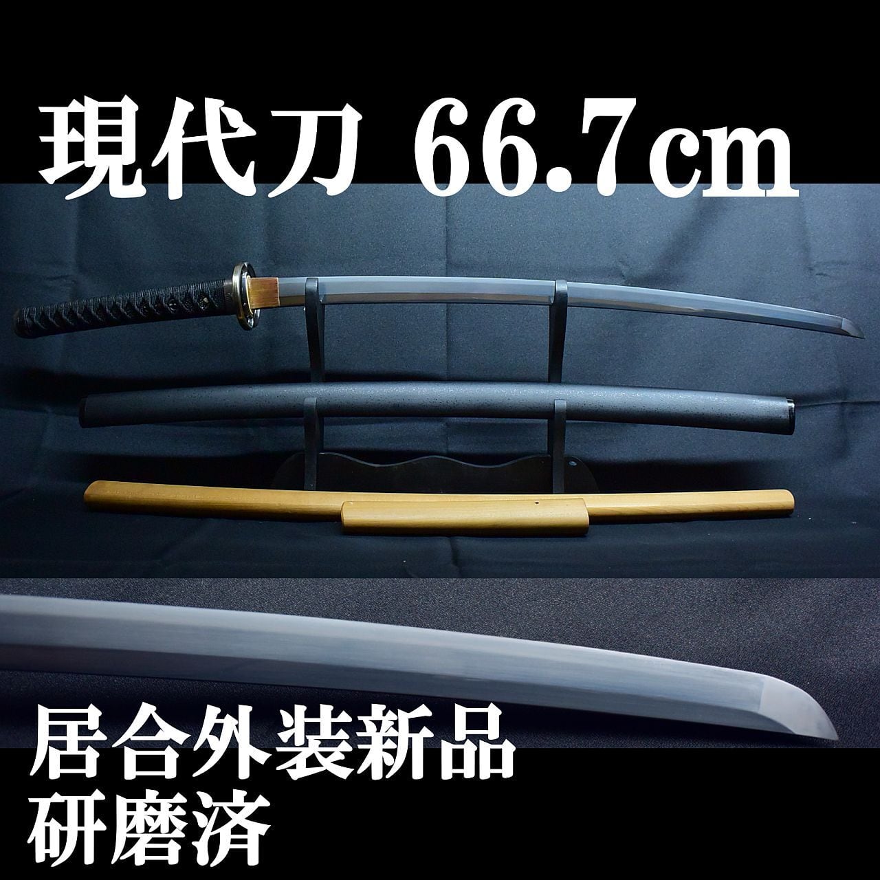 【現代刀】66.7cm 刀身重量720g 元幅約3.2cm 元重 約7mm 研磨済! 居合外装拵え新品!!
