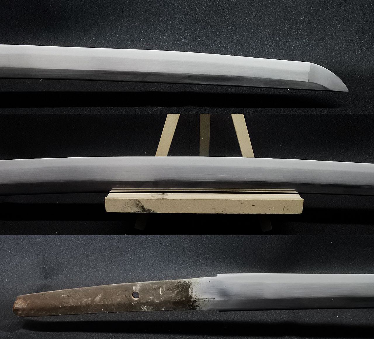 刻印、銘ともに消されていますが、一枚鍛えのズブ焼き軍刀のようです。
