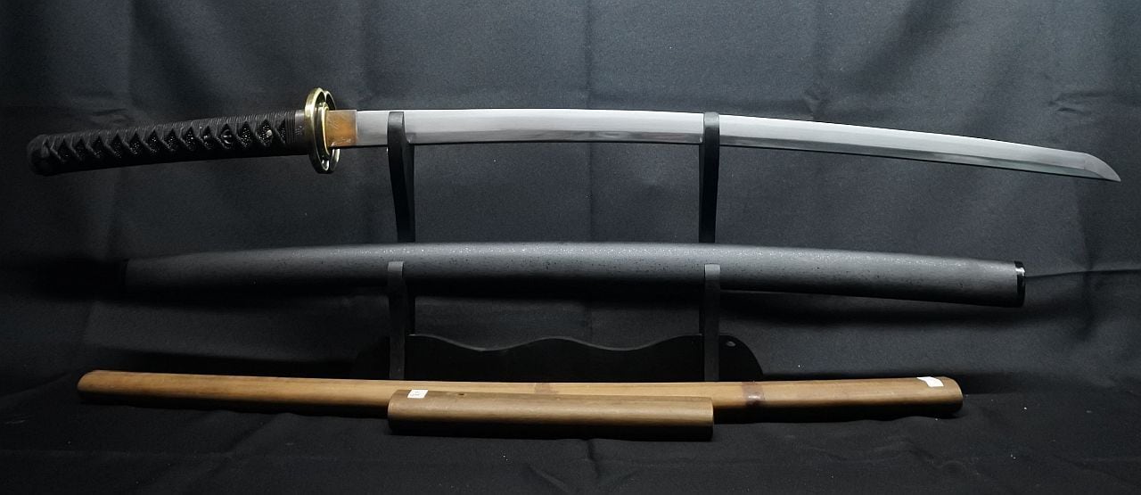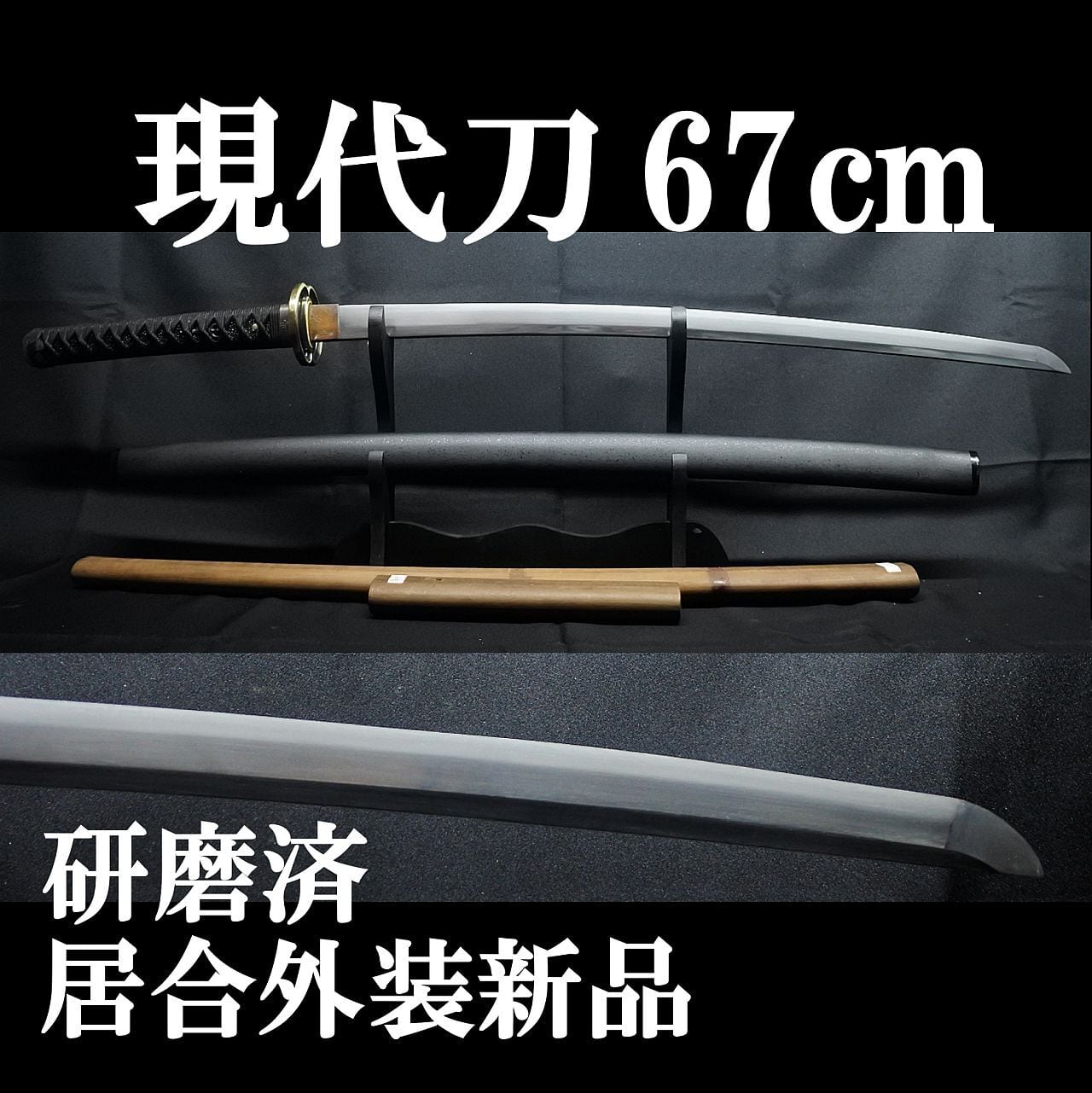 【現代刀】67cm 刀身重量740g 元幅約3.2cm 元重 約7mm 研磨済! 居合外装拵え新品!!