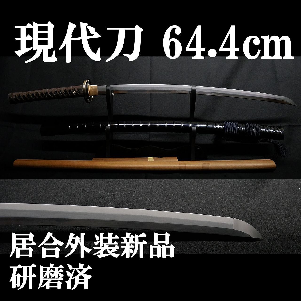 【現代刀】64.4cm 刀身重量700g 元幅約3.0cm 元重 約7mm 研磨済! 居合外装拵え新品!!