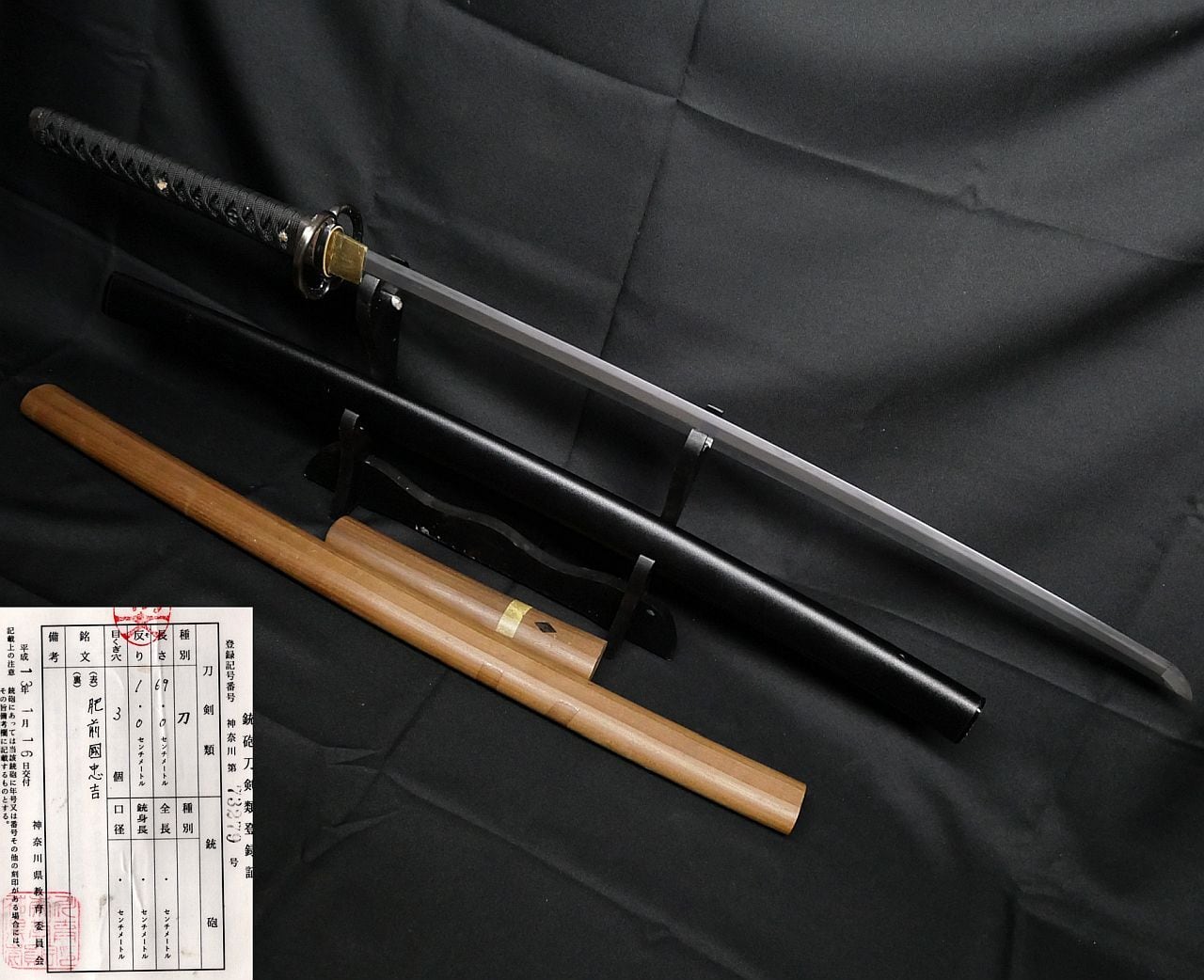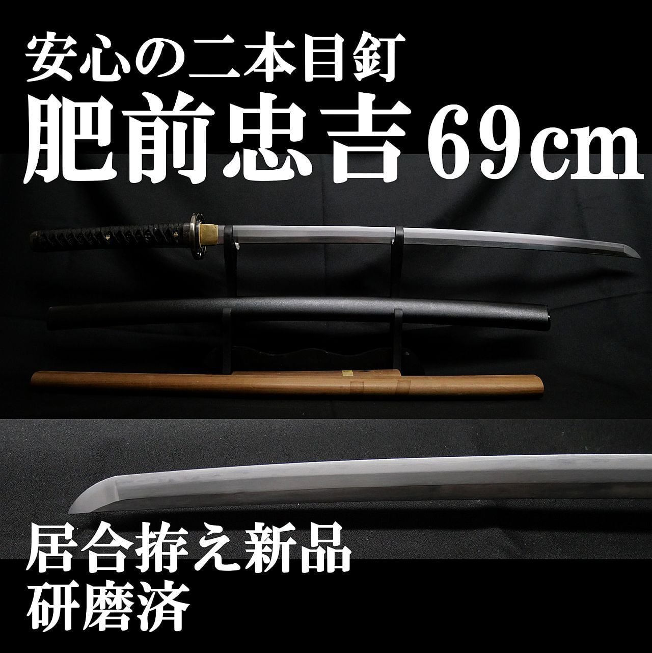 【新刀】肥前国忠吉 69cm 刀身重量700g 元幅約3cm 元重 約7mm 研磨済み! 居合外装拵え新品!!