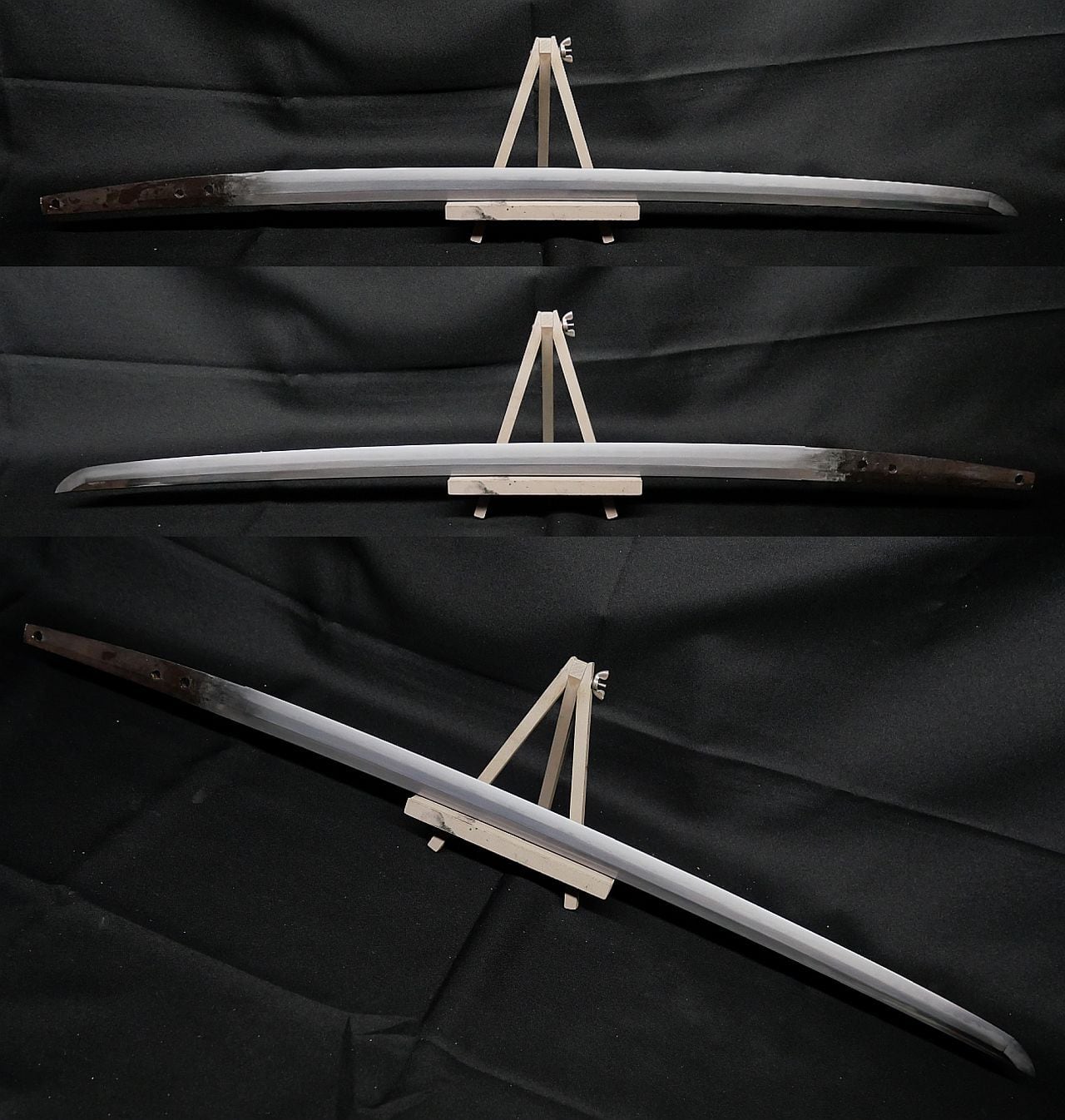 【新刀】銃砲刀剣研究会鑑定 藤原高田極め 刀身重量600g 60cm 元幅約2.8cm 元重 約7mm弱 研磨済 外装新品!