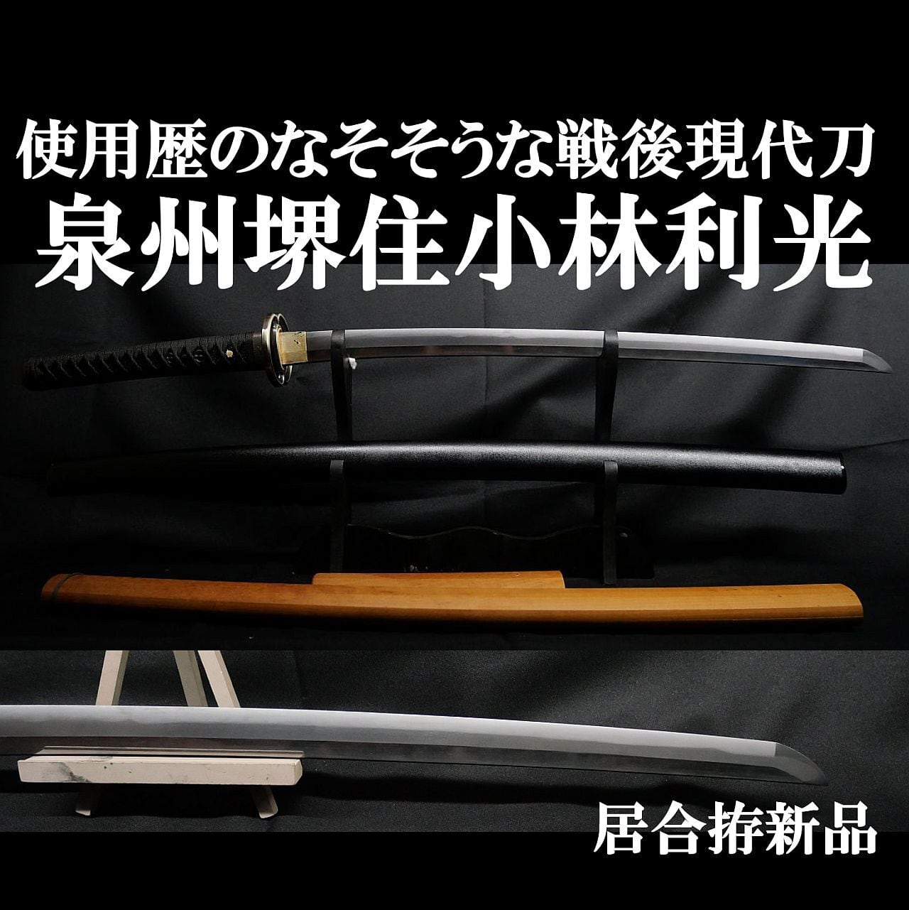 【現代刀】戦後の現代刀 泉州堺住小林利光 59.4cm 刀身重量670g 元幅約3.1cm 元重 約8mm弱 外装新品!