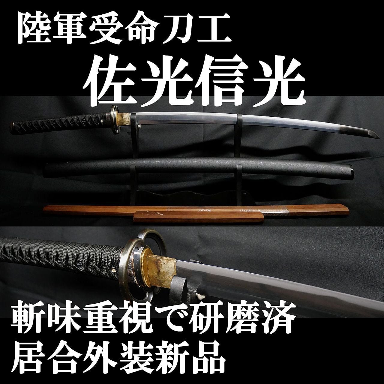 【現代刀】陸軍受命刀工 佐光信光 66.7cm 刀身重量750g 元幅約3.2cm 元重7mm 切味重視で研磨済! 外装新品!