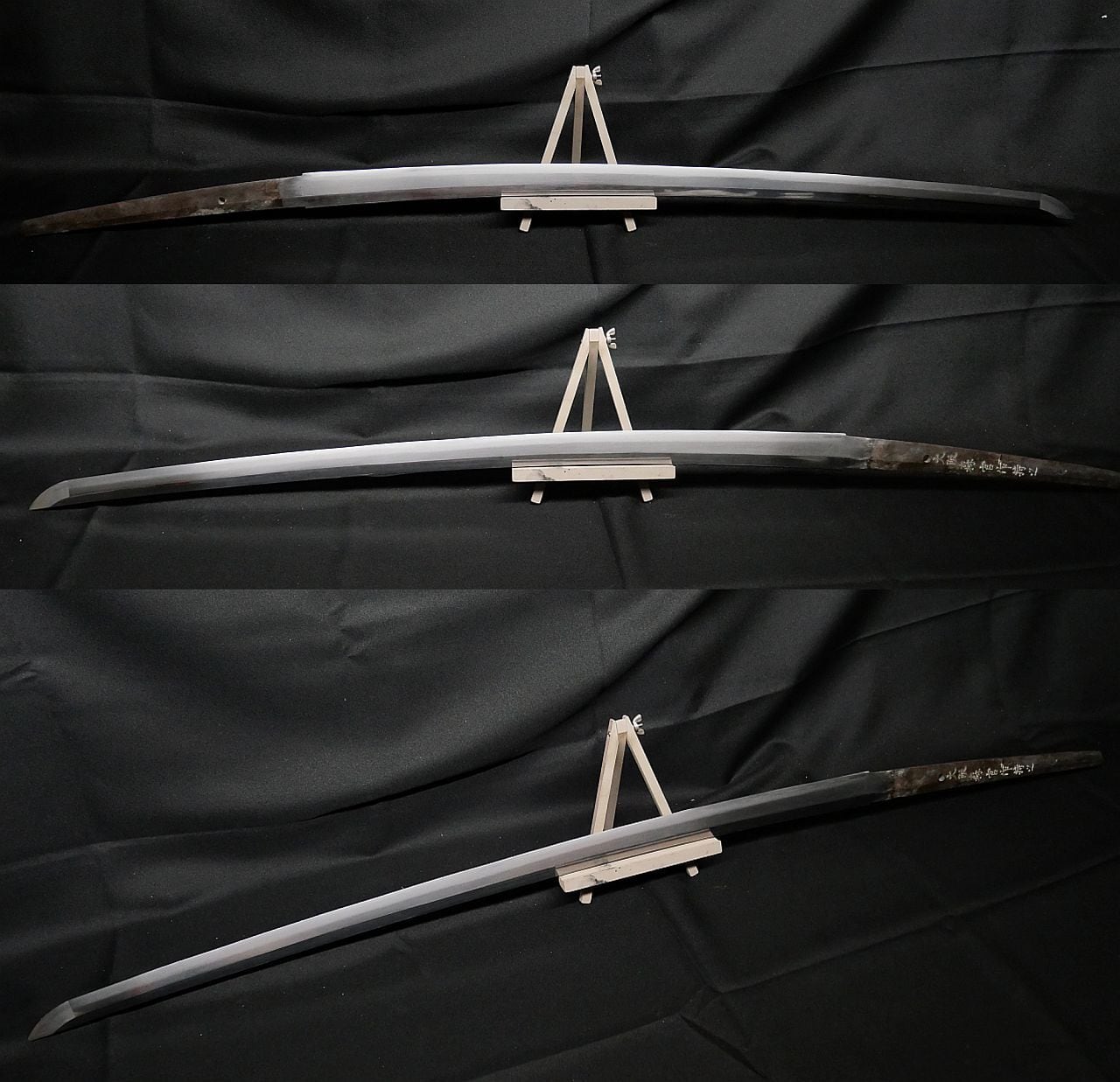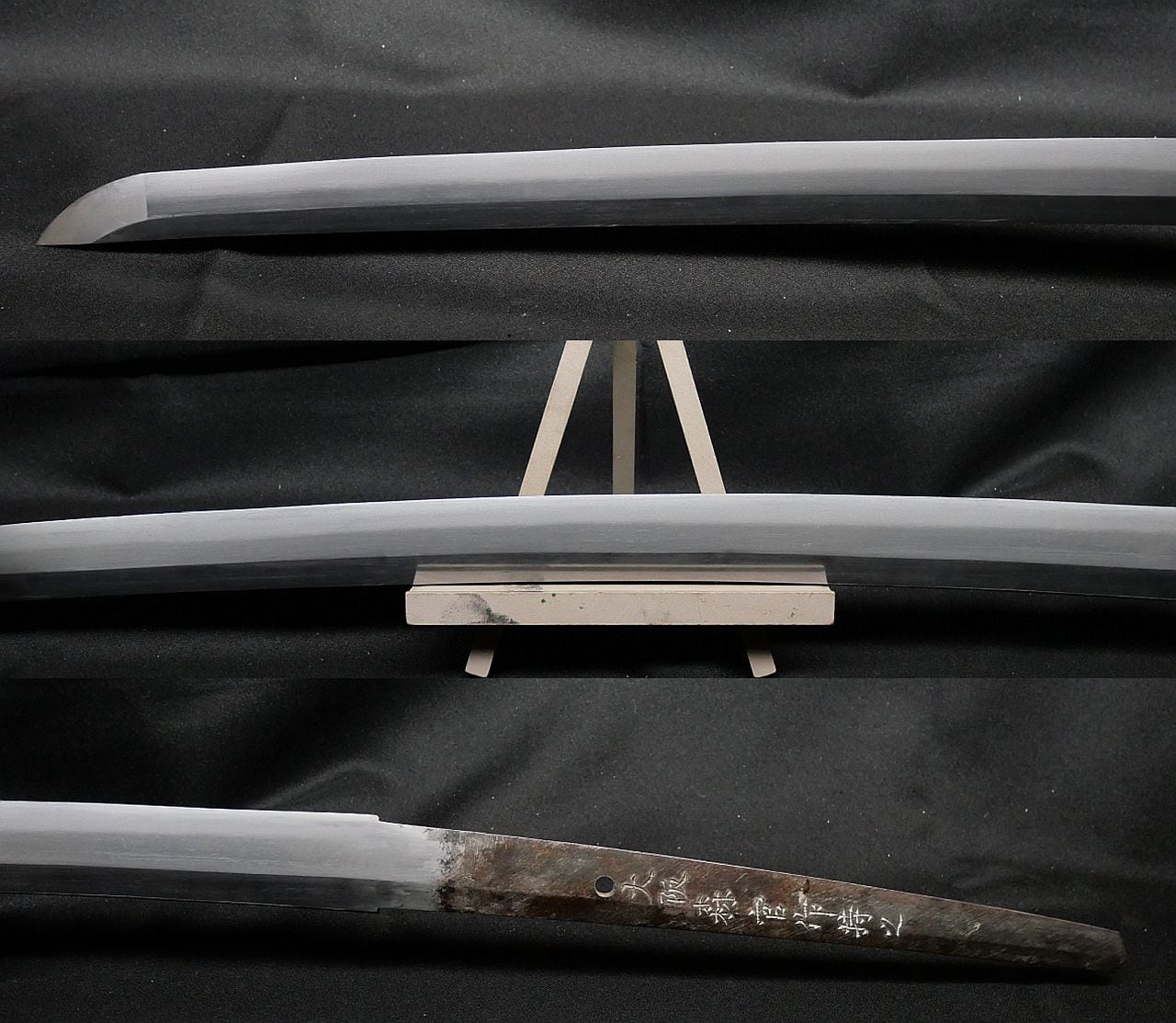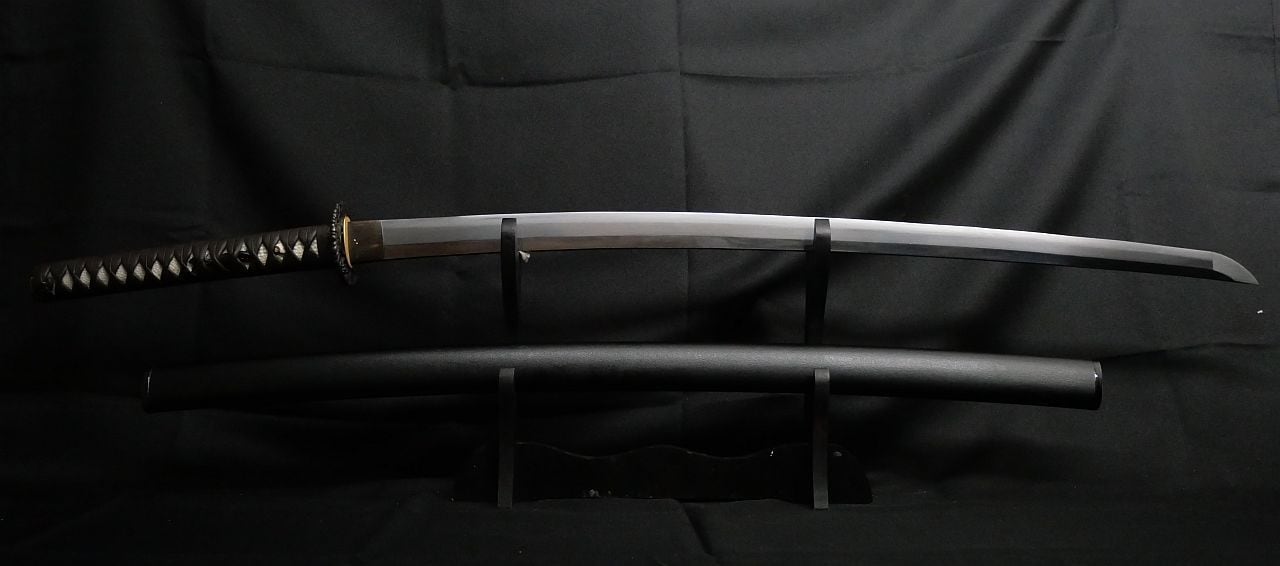 売り主の話が正いとすれば、本鍛錬なので大阪月山派の刀の可能性が高いですが、証明するものもないので参考までに留めてください。