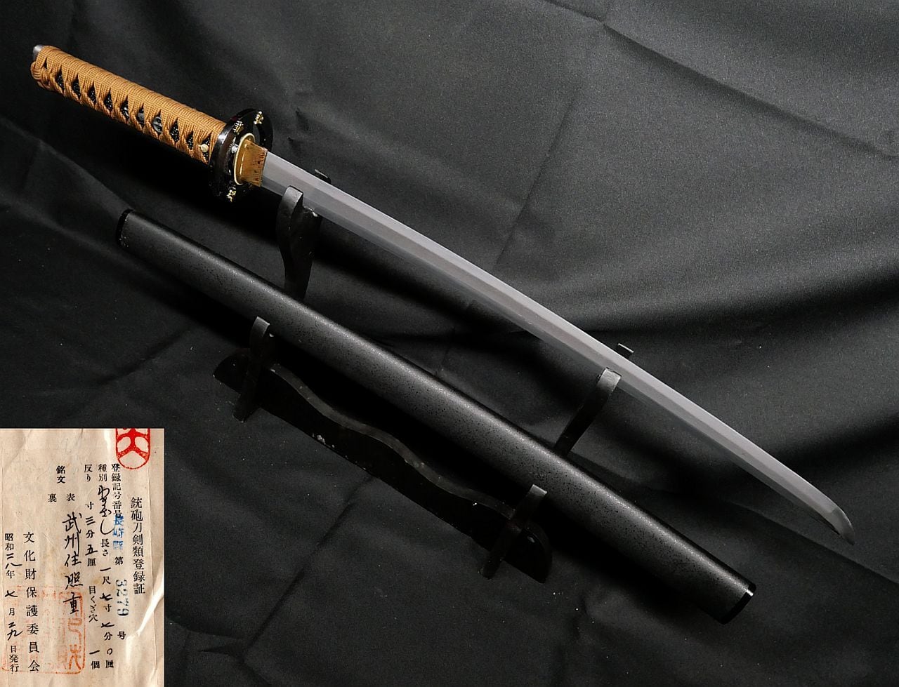 【新刀】業物 武州住照重 約53.6cm 刀身重量510g 元幅約3cm 元重6mm 研磨済! 外装新品!
