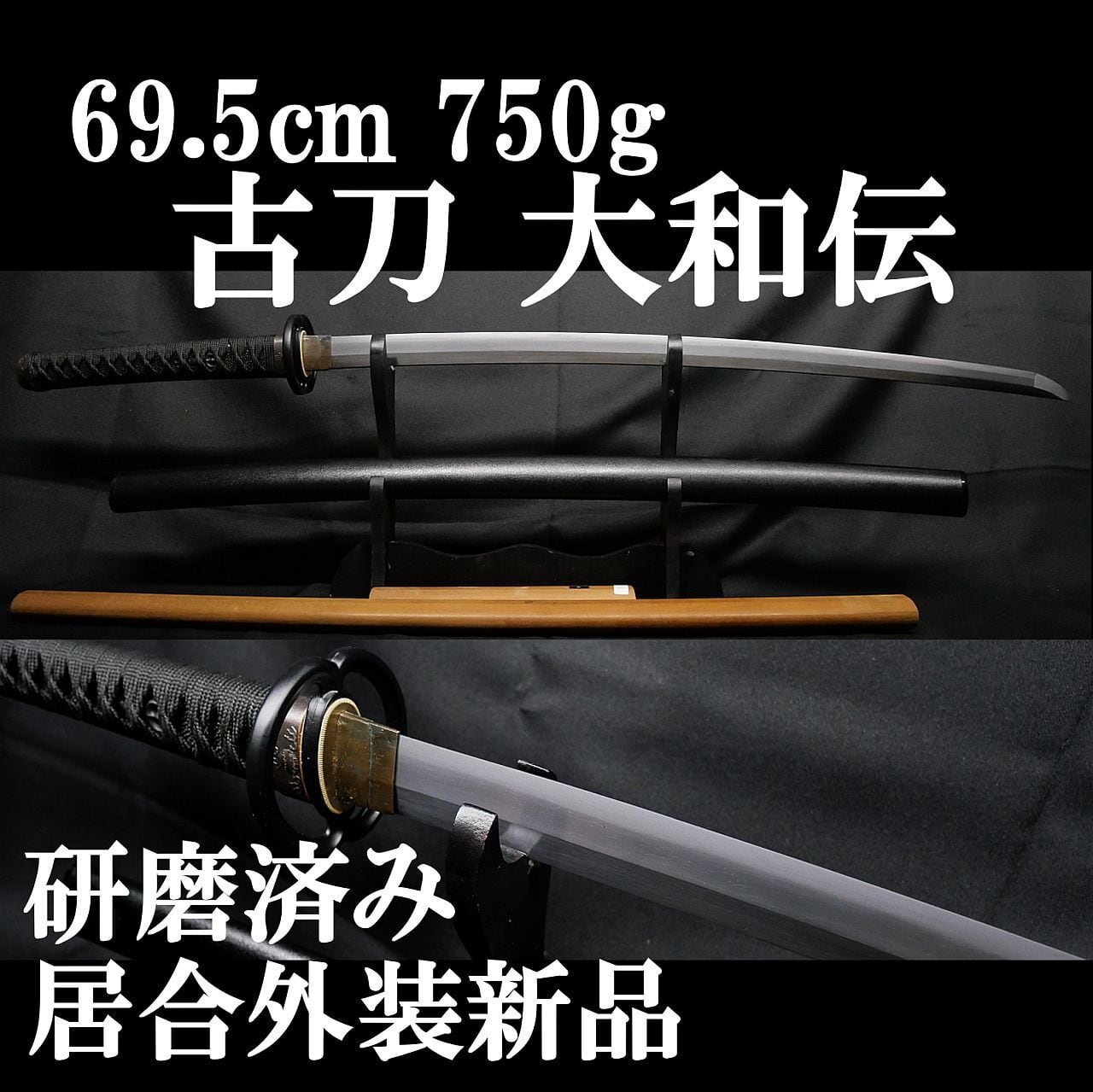 【古刀】大和伝 69.5cm 刀身重量750g 元幅約3cm 元重 約7mm 研磨済み! 居合外装新品!