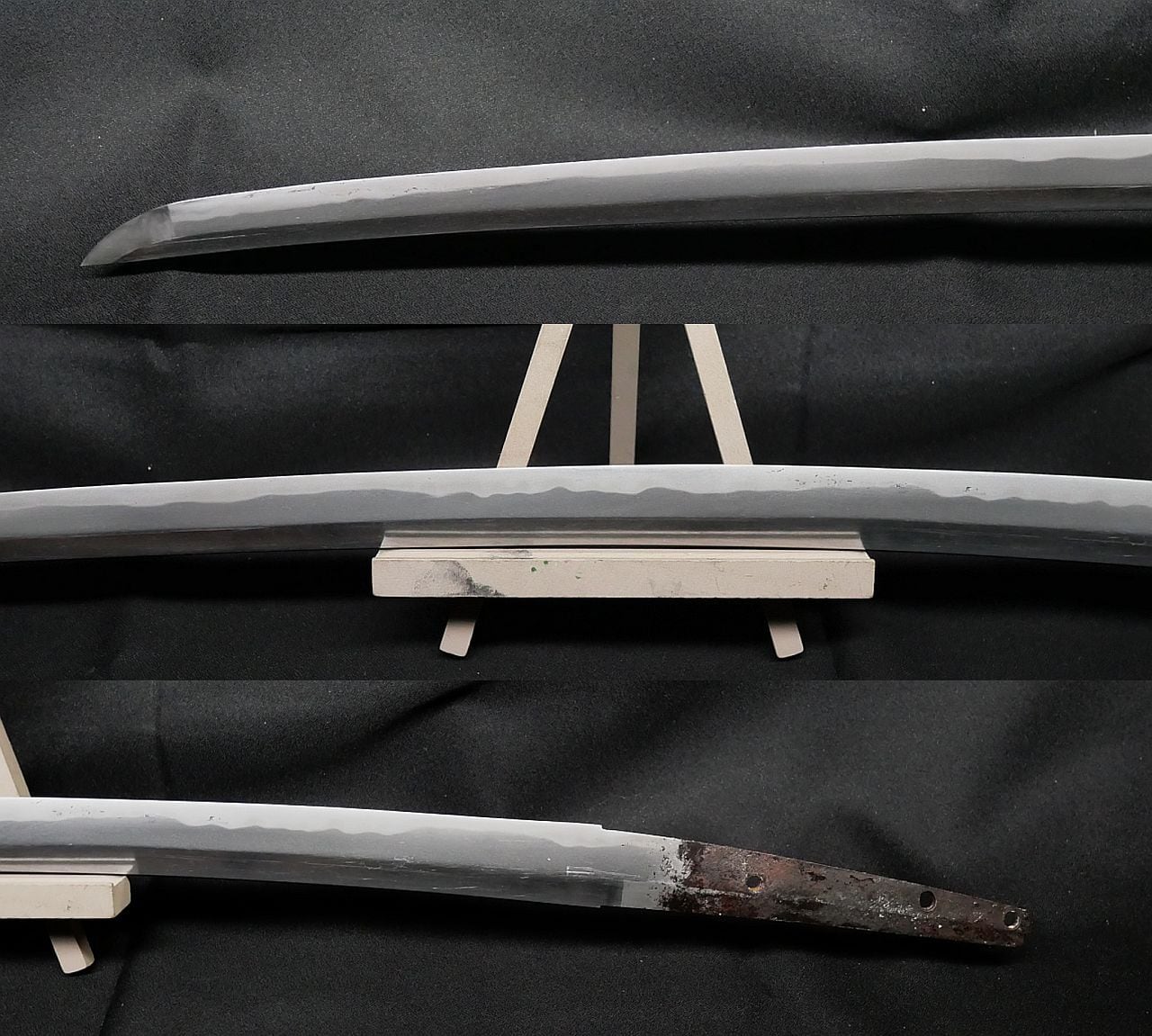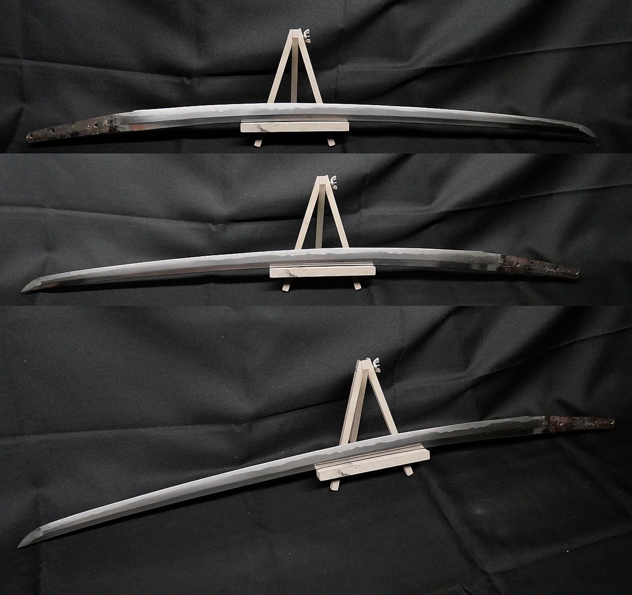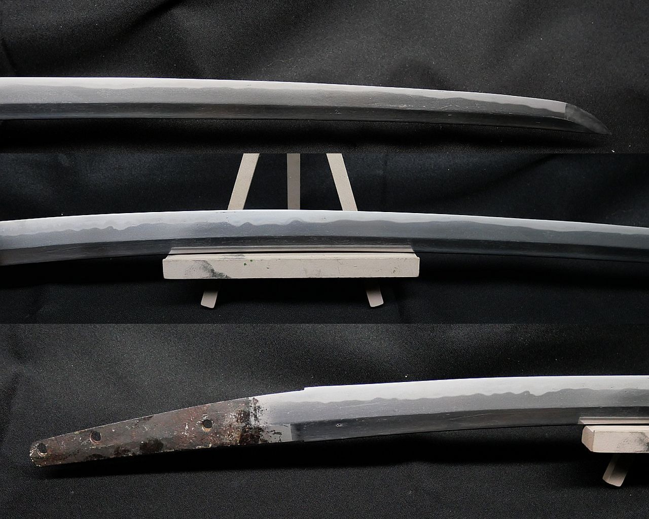 軽いですが、茎の厚さと刀身の厚さを見るに研減ではなさそうです。