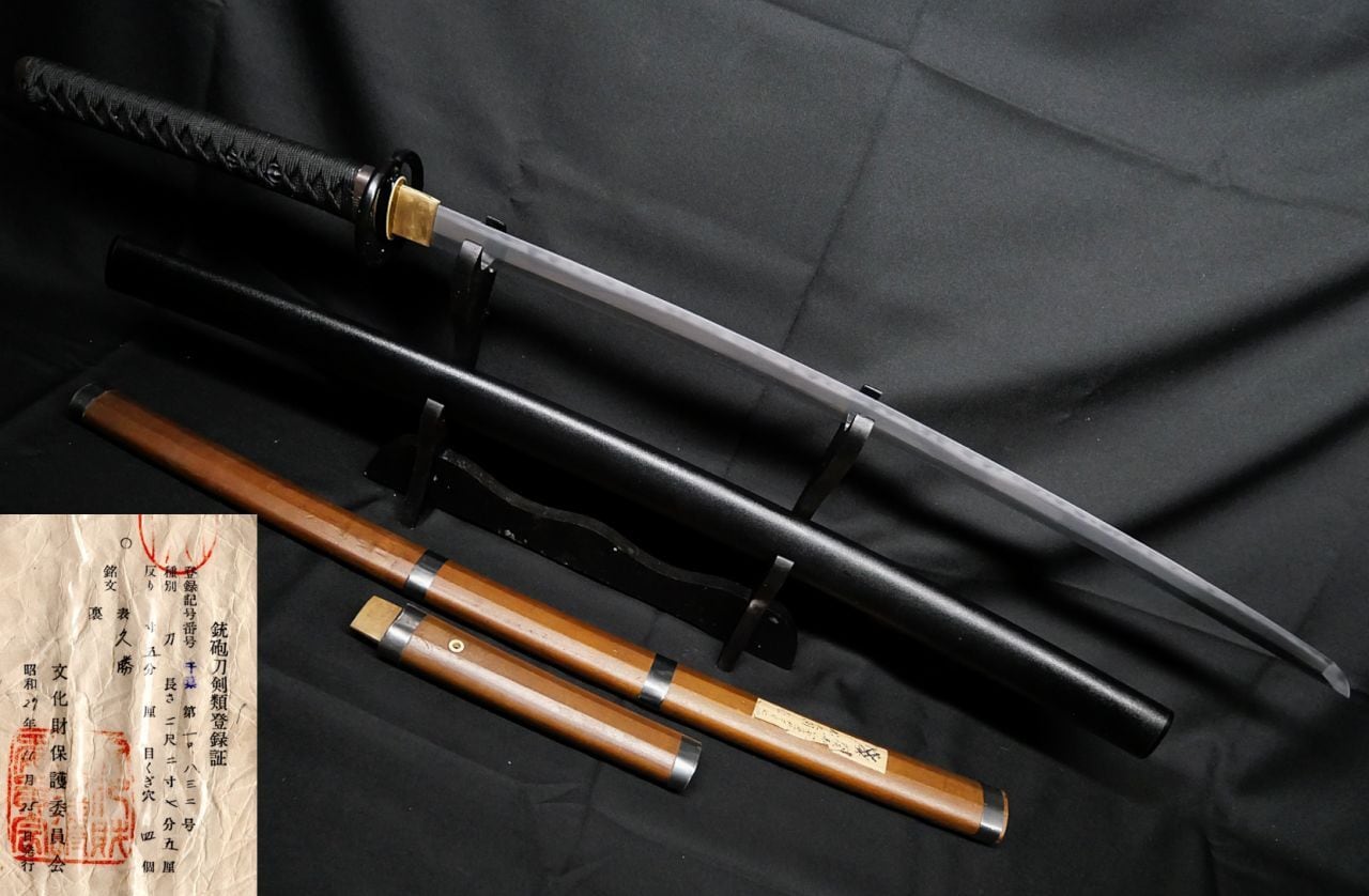 【古刀】久勝(美濃千手院派) 約69cm 約600g 元幅約3.2cm 元重約7.5mm 研磨済! 居合外装新品!