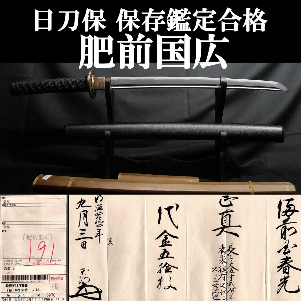 保存の鑑定書は日刀保より5月下旬に発行のため、鑑定書が発行されましたら6月頃にレターパックにてお客様宛に発送いたします。