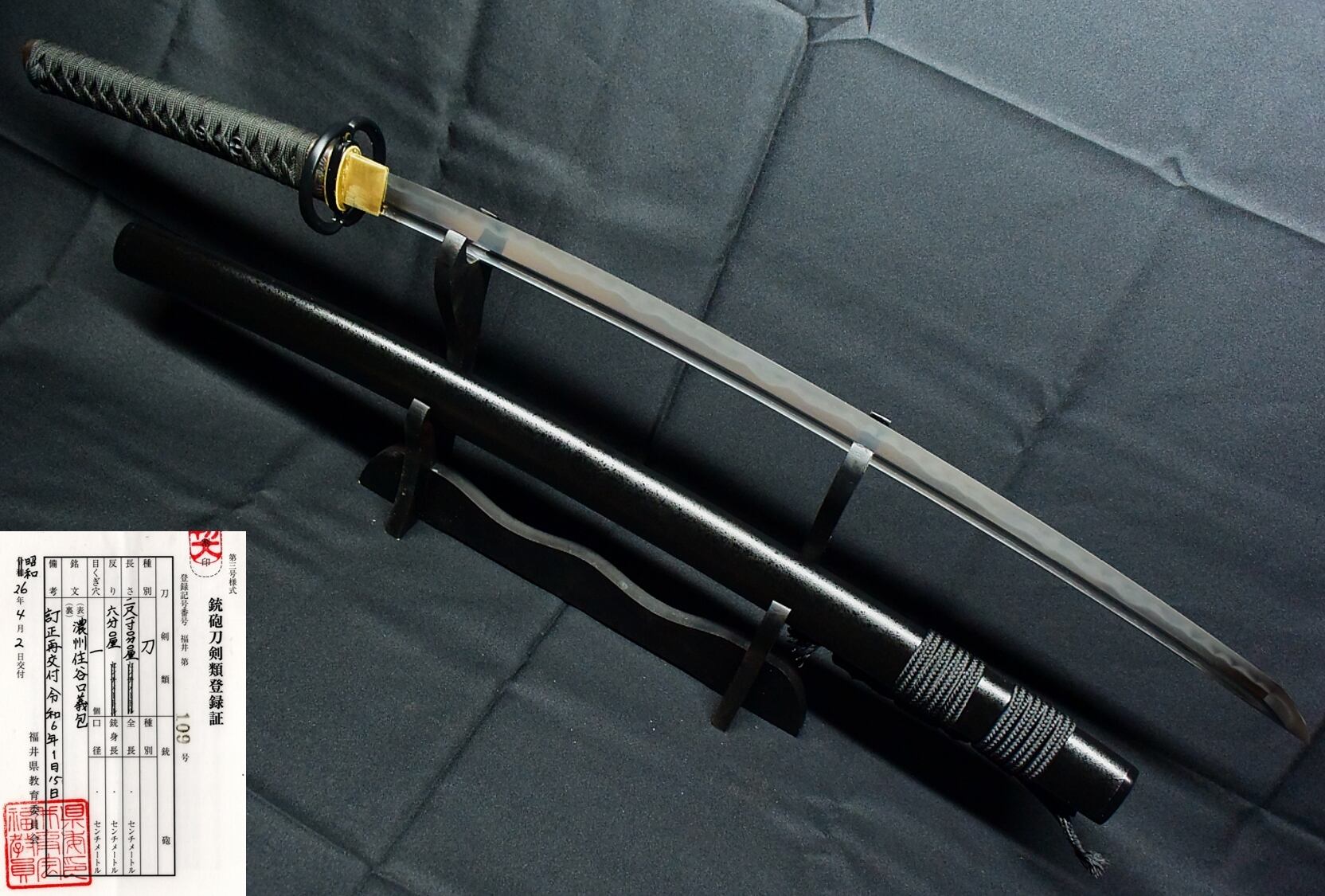 【現代刀】大名登録 谷口義包 63cm 元幅3.1cm 元重 約7mm 刀身重量 650g 研磨済・居合外装拵え新品!!