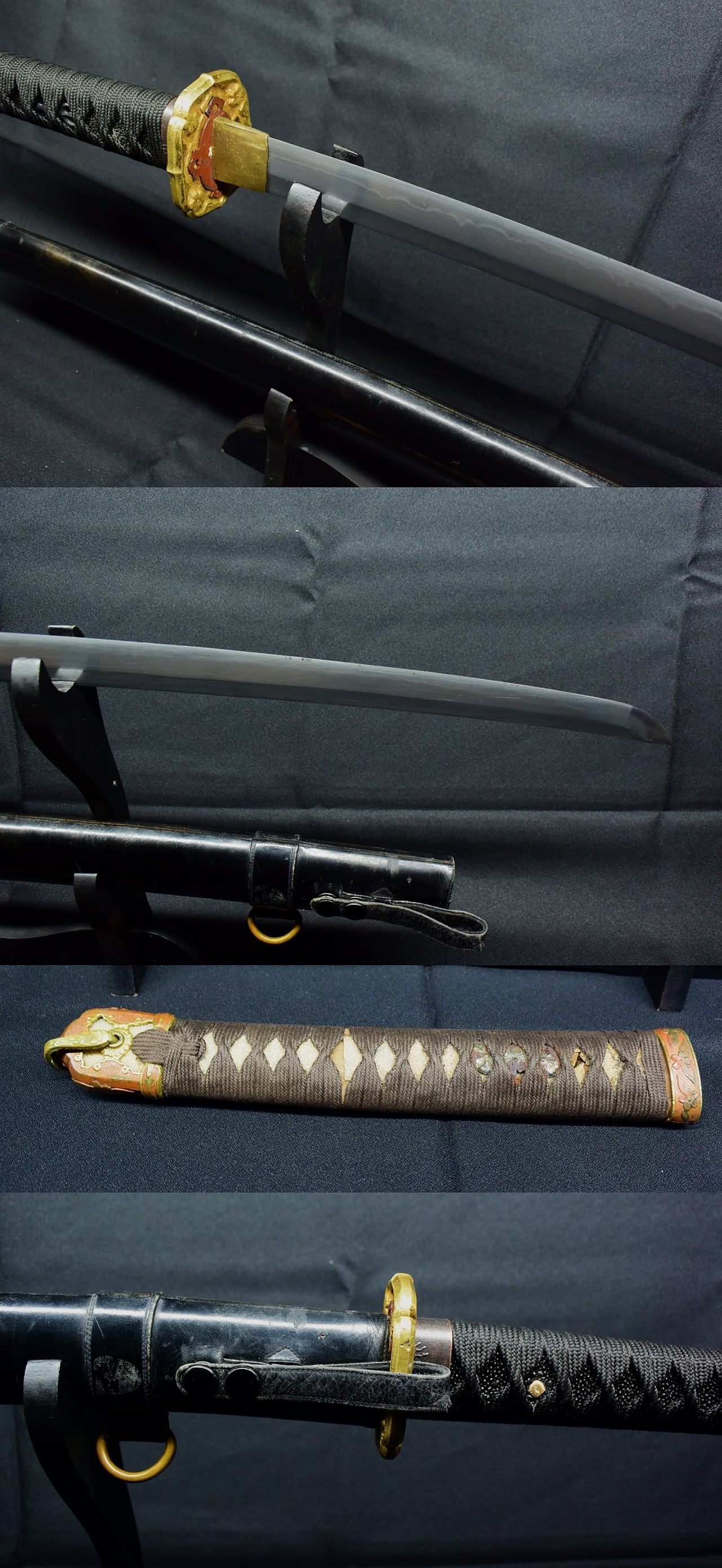 外装は革巻の九八式軍刀ですが、柄の状態が悪いので新品居合柄を用意しました。